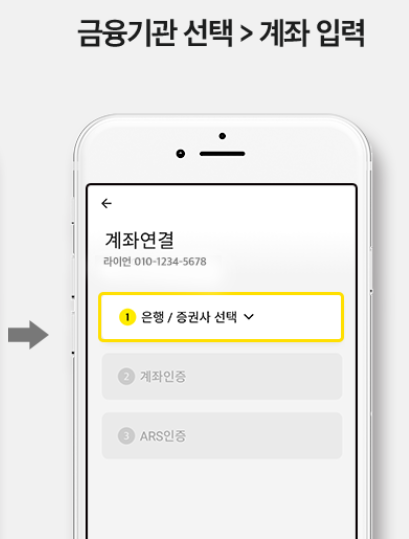 - 계좌 연결 과정에서 본인인증이 필요합니다. 휴대폰 인증이나 신분증 인증 등의 방법을 선택할 수 있습니다.