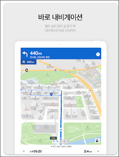 - 3D 지도 및 스카이뷰 활용: 벡터 기반의 3D 지도와 실사 스카이뷰를 통해 도로와 건물의 외관을 실감 나게 확인할 수 있습니다.
